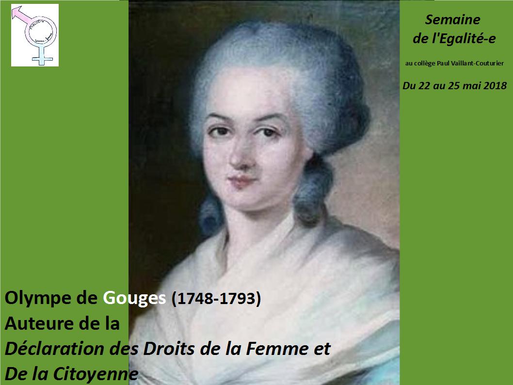 Du 22 au 25 mai 2018, la première semaine de L'Egalité-e aura lieu au collège. Les 4e bénéficieront de différents ateliers pour les sensibiliser à la questions de l'égalité filles-garçons : des interventions menées par les associations Dans le genre égale, Genrimage, Synergie théâtre et Amnesty International ainsi que par le Point Ecoute de Champigny et Ambre Elhadad, chargée de mission au droit des femmes à la mairie de Champigny ; des visites d'expositions et une projection du film Hors-Jeu au sein du collège ainsi que des cours spéciaux menés par les professeur.e.s de l'établissement.