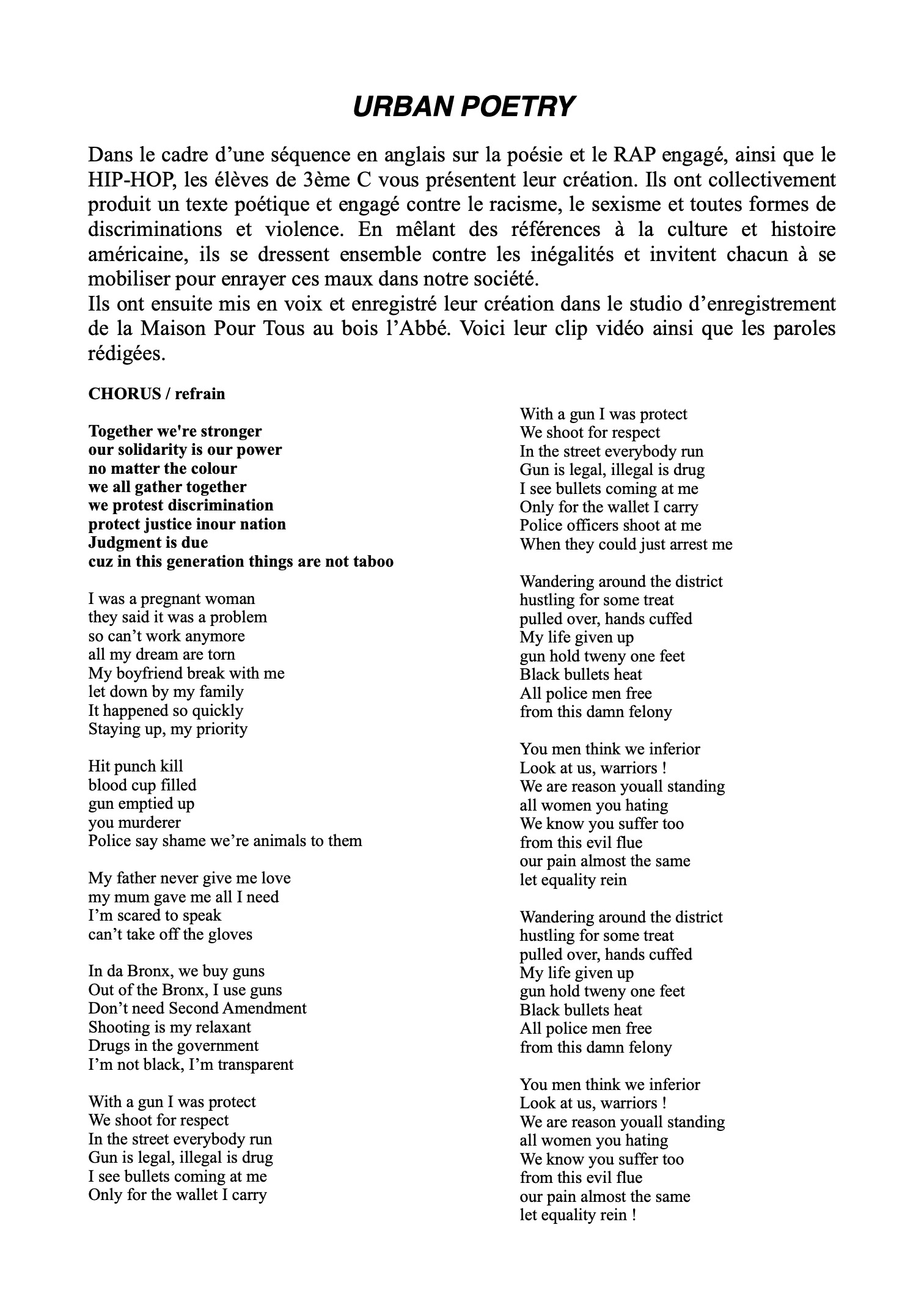 URBAN POETRY 3C